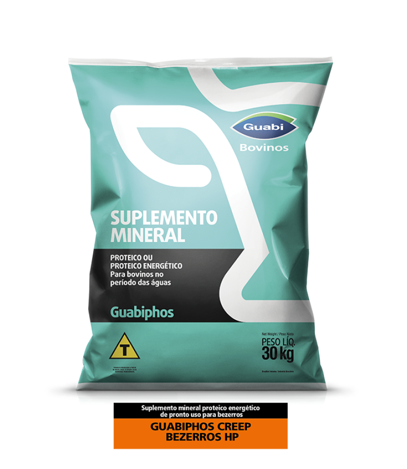 Guabiphos Águas é um suplemento mineral proteico, pronto para uso, formulado com 20% de proteína bruta, fosfato bicálcico, macro e microelementos minerais, e ureia pecuária de liberação lenta. Indicado para suplementação de bovinos, nas fases de recria e engorda, nos períodos de transição e das águas.